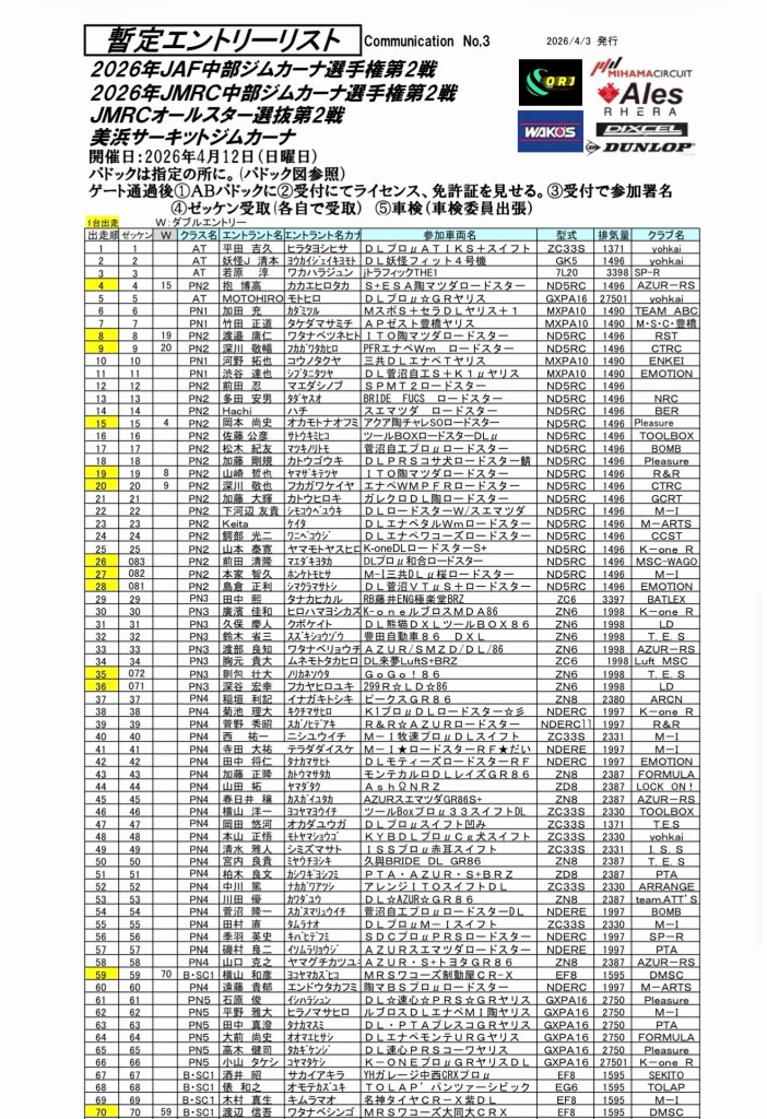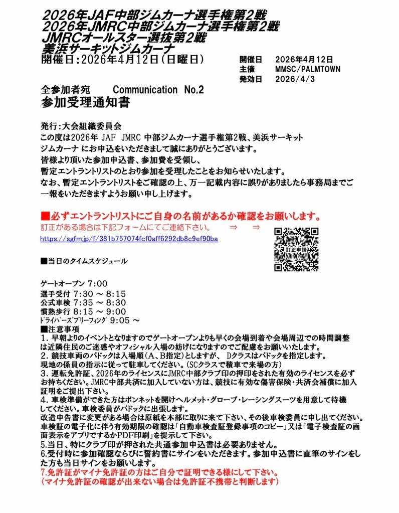 ①JMRC中部共通申込書をメールで送り、参加費は振込をする。
